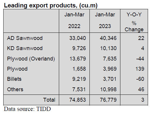 which accounted for the 3,969 cu.m exported in the first quarter 2023.
