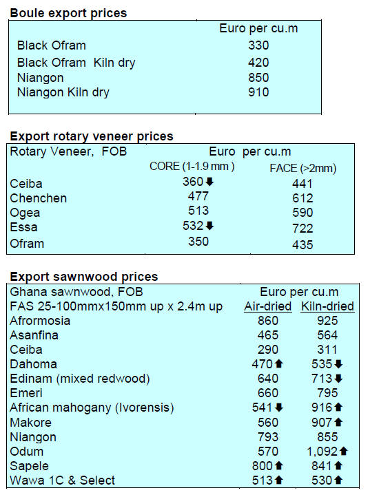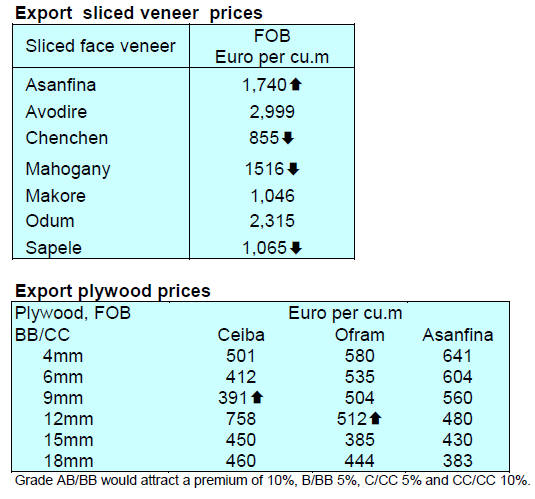 demand for okoume and ayous is weak while, for other species such as