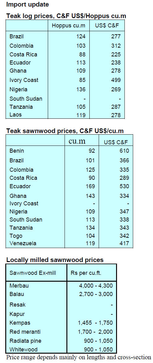 ovangkol, belli and okan demand remains stable. With falling demand in China