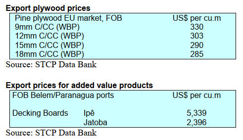 Eur366/cu.m, plywood (regional market) Eur394/cu.m and