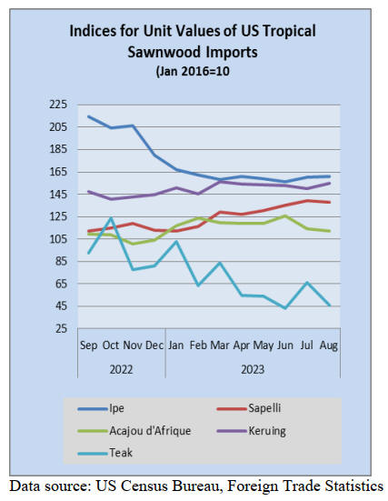 also made strong gains. Imports of Balsa and Ipe both