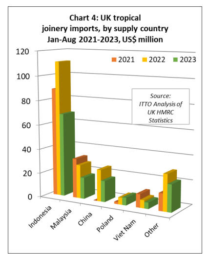 The UK imported 61,000 cu.m of tropical hardwood
