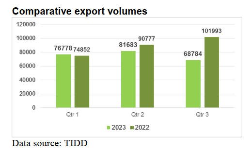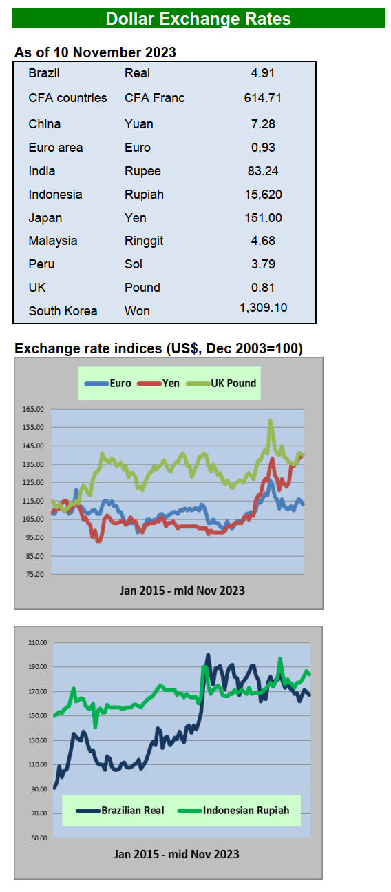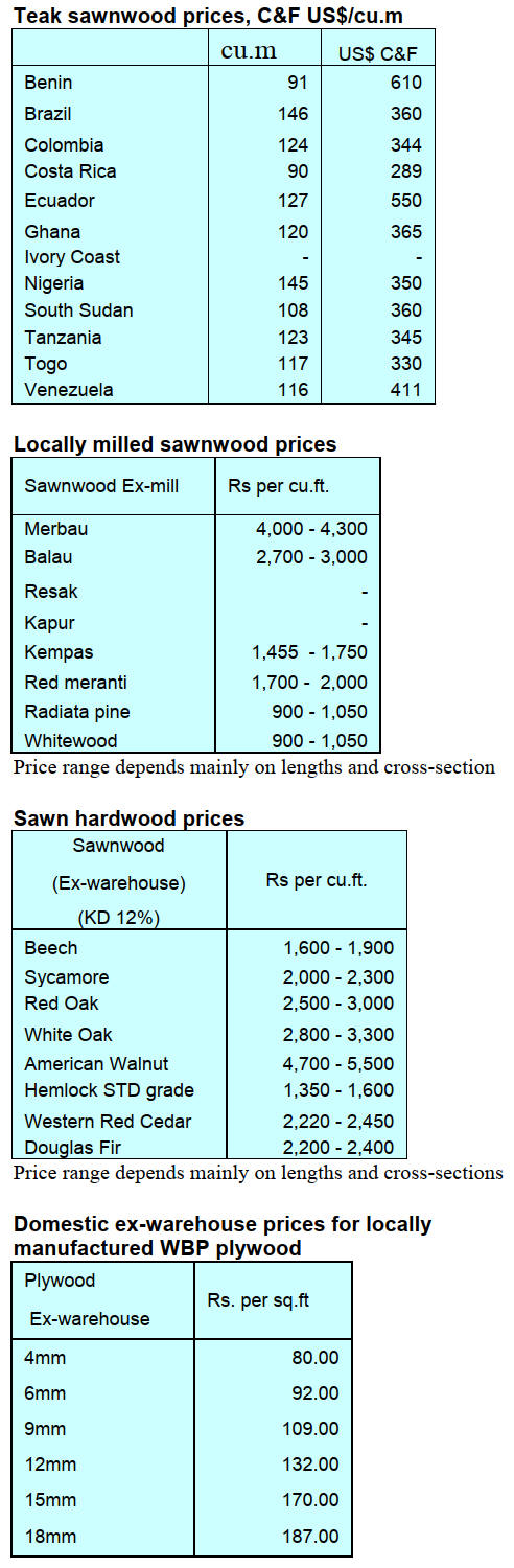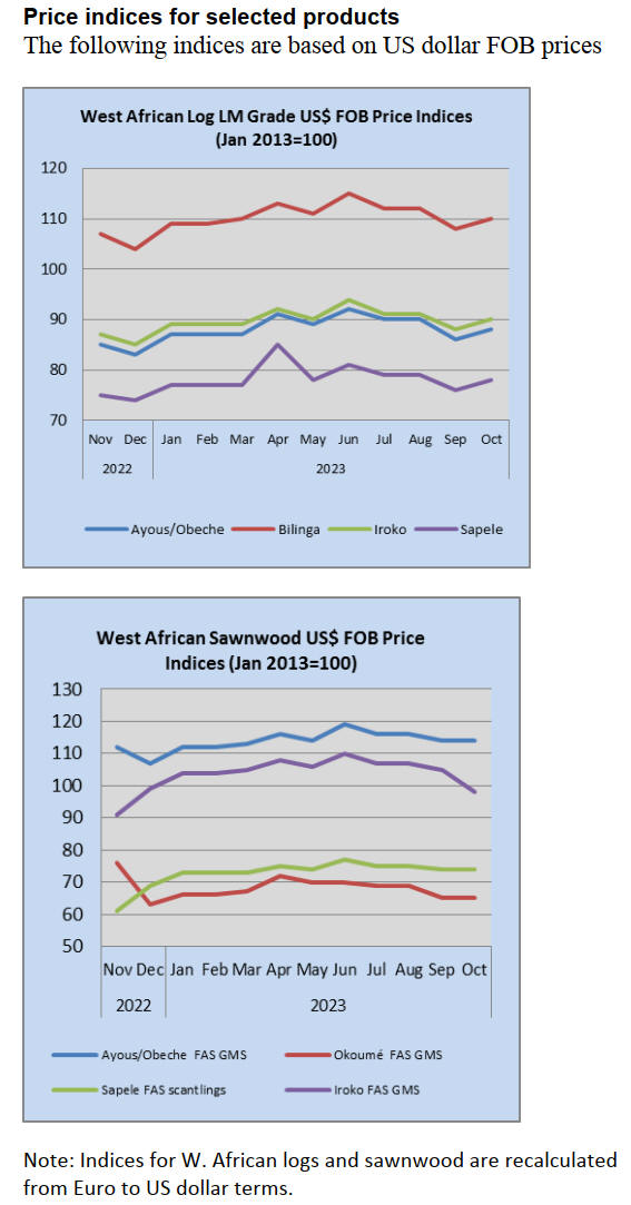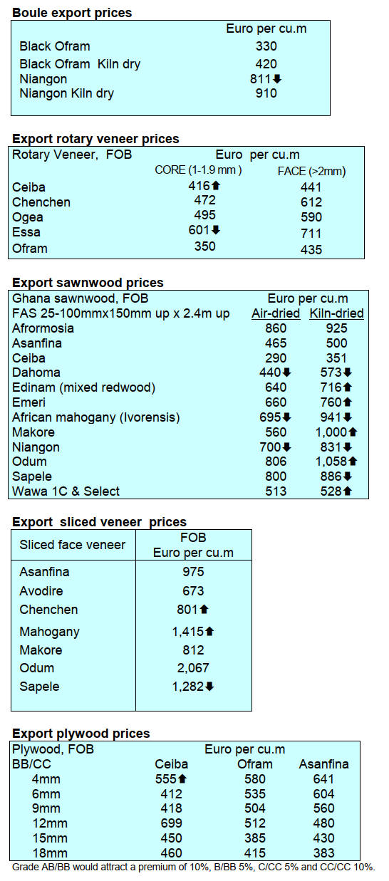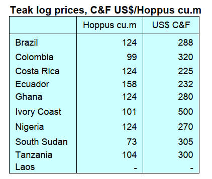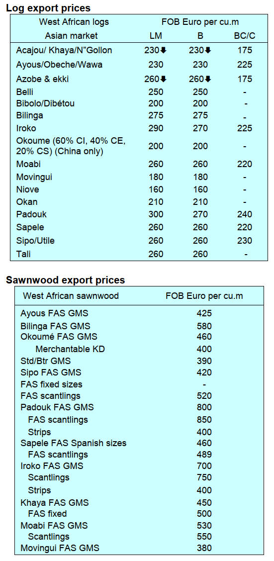in log deliveries to mills. In Gabon, heavy up-country rain