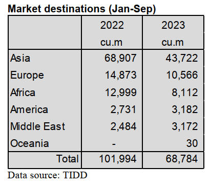 Eur17.03 million (56%) from 43,722 cu.m. (64%) of wood