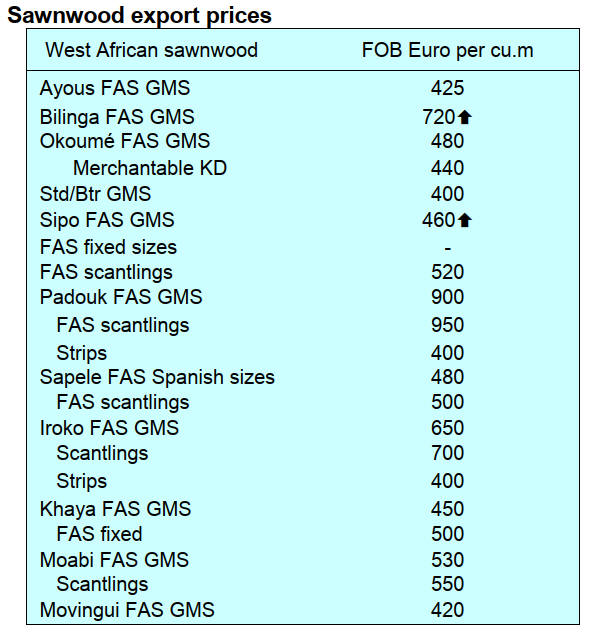 The recent up-tick in some sawnwood prices can be