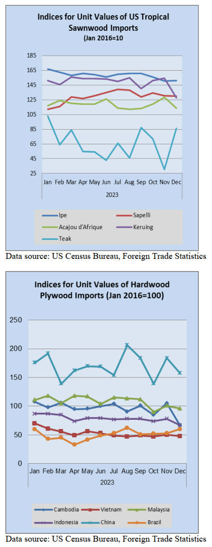 2023, a decline of 29%. Imports of Sapelli and Ipe, which