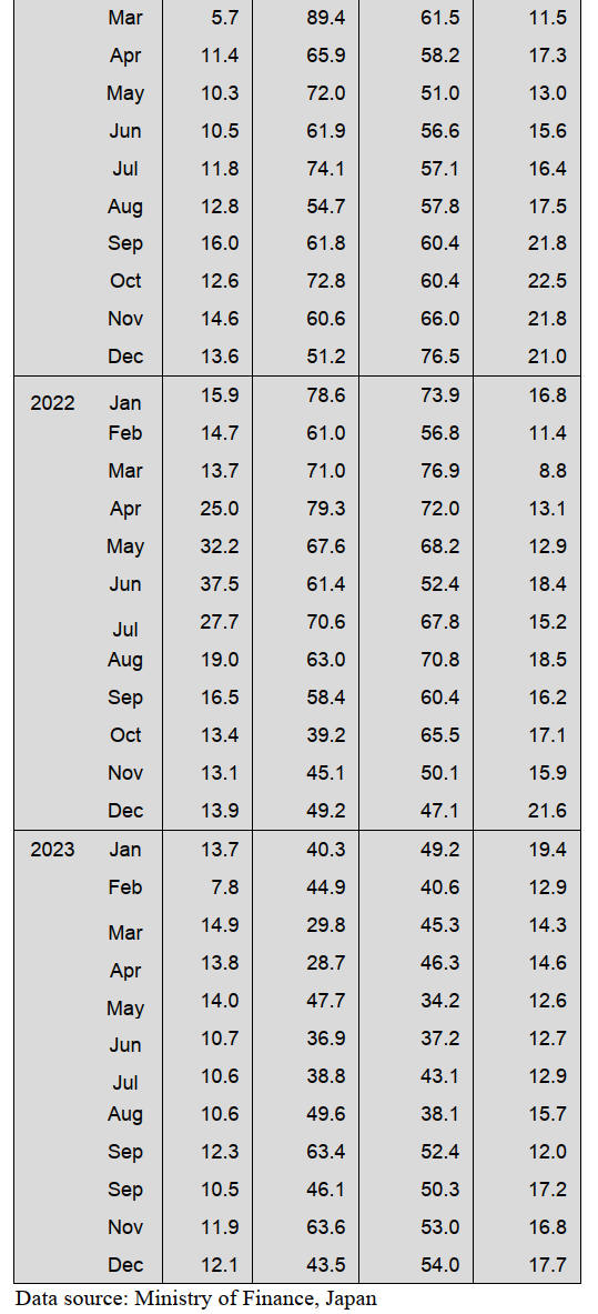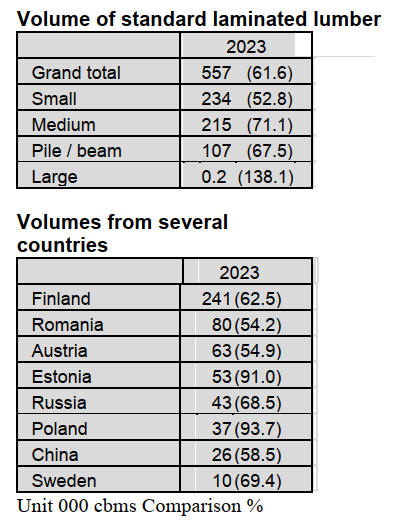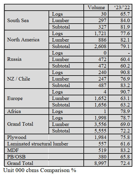 557,853 cbms, 38.4 % less than 2022. This is for the first
