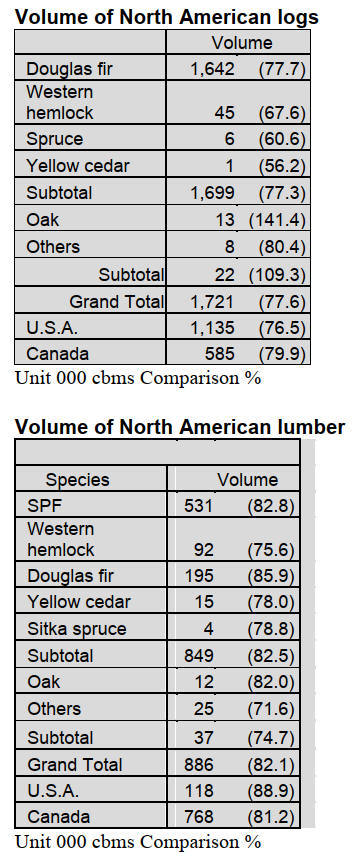 logs. Imported plywood is under 2,000,000 cbms. MDF,