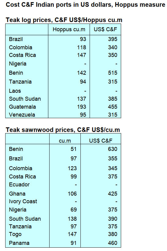 are regular orders for padouk, iroko and doussie but for