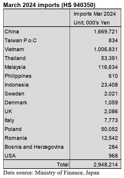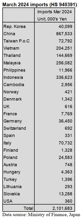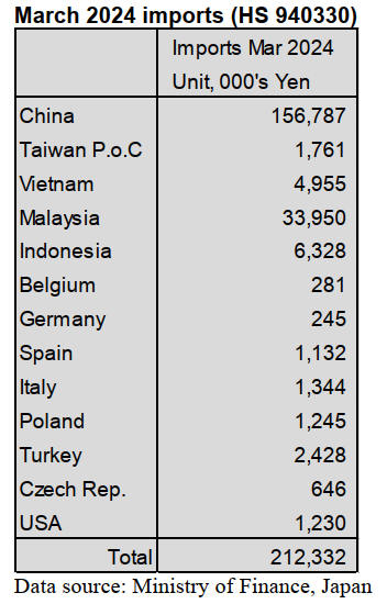 represented just 8% of Japan’s March imports of furniture