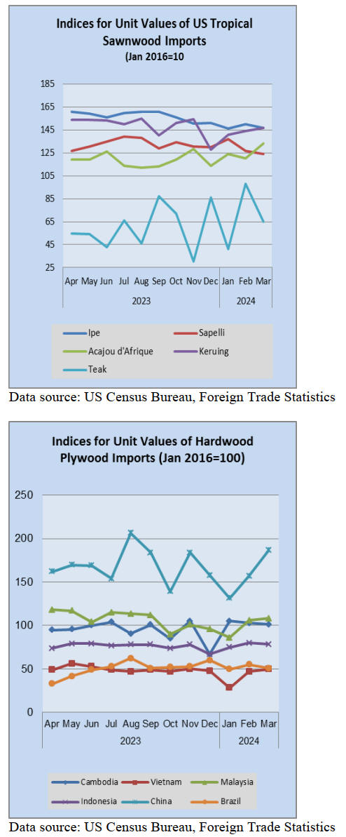 Canada’s imports of sawn tropical hardwood fell 7% in