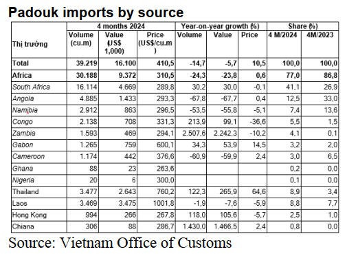 wood products bought just US$3.8 million, down by half