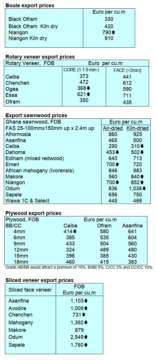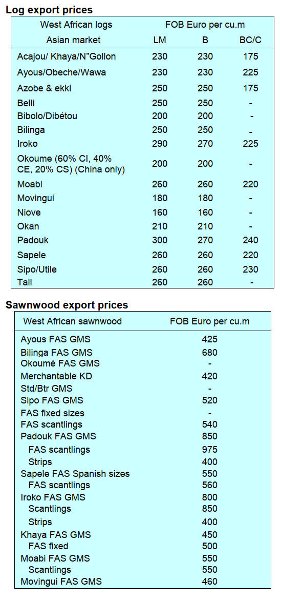 price for belli and weakening prices for okoume and the