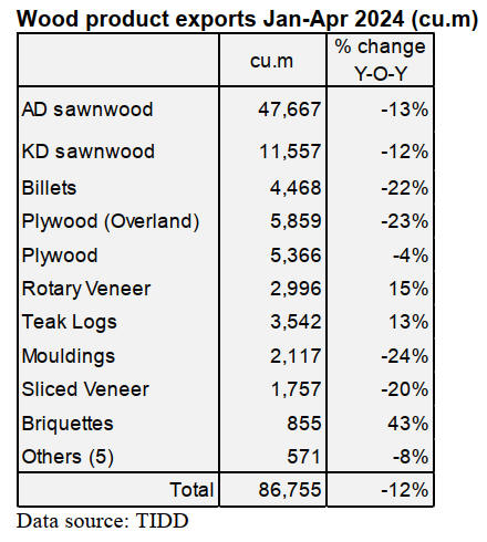 Wood product export earnings down year on year