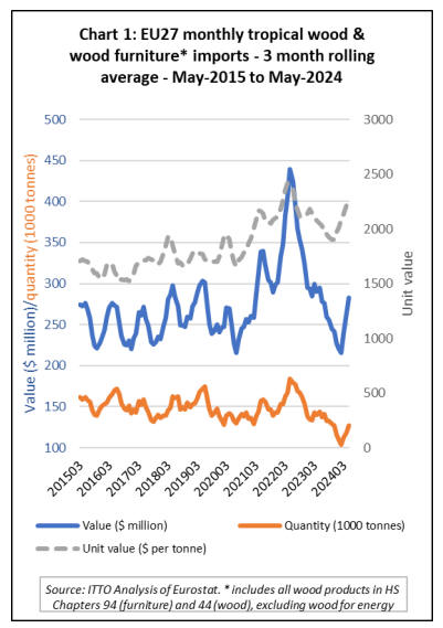 Most of the recovery in EU27 imports of tropical wood