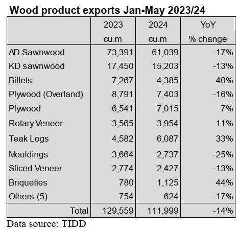 Between January and May 2024 wooden furniture exports