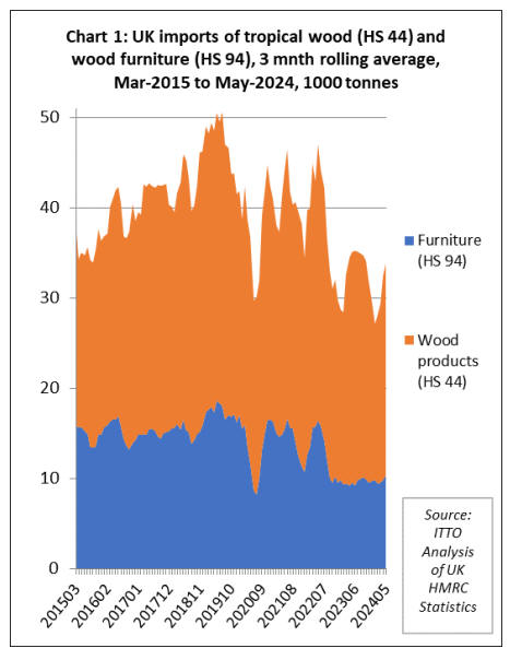 very slowly, UK imports of tropical wood products