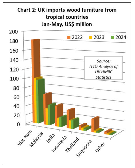 UK imports of wood furniture products from tropical