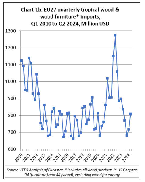 EU tropical wood import quantity heading for an