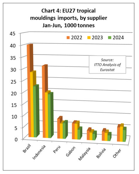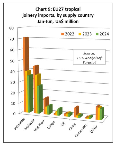 In value terms, EU27 tropical wood product imports are