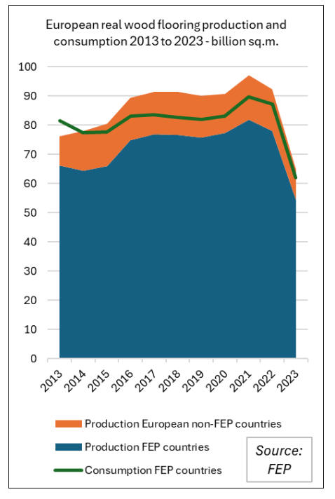 In 2023, real wood flooring production in FEP countries
