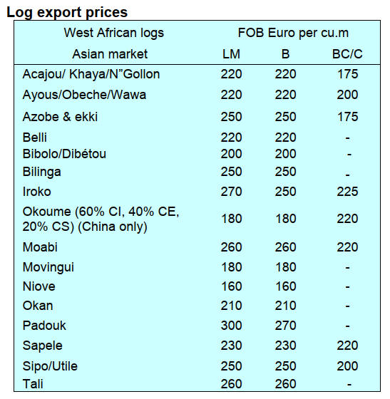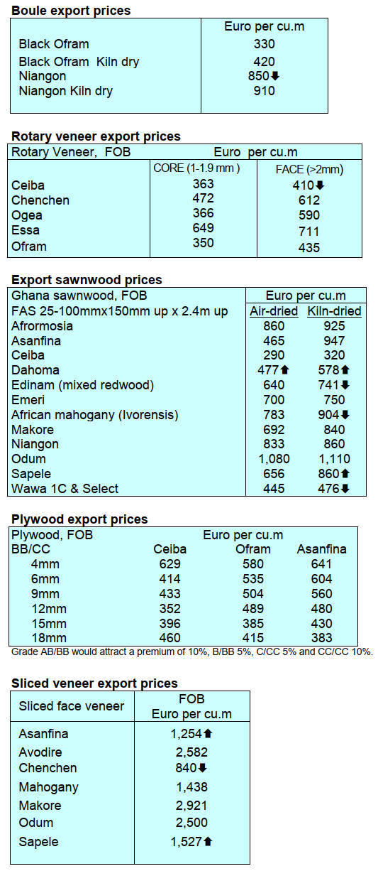 slowdown in purchases of veneer and Padouk sawnwood.