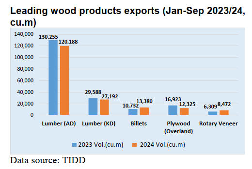 principal export species, shipped primarily in log form for