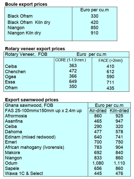 consistent appetite for Tali and Padouk continues, while