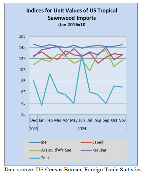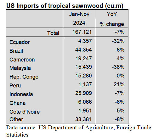 sawn tropical hardwood remain ahead of 2023 by 39%.