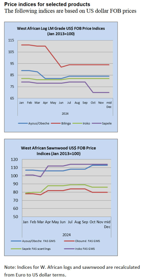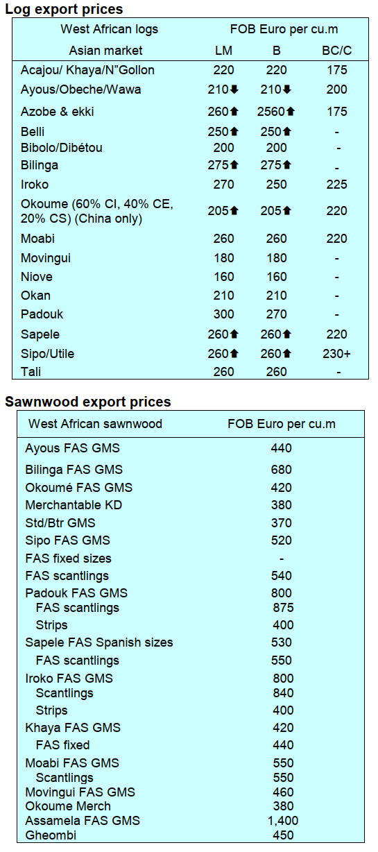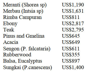 at up to 85,000 FCFA/cu.m. Sawlog prices in the local