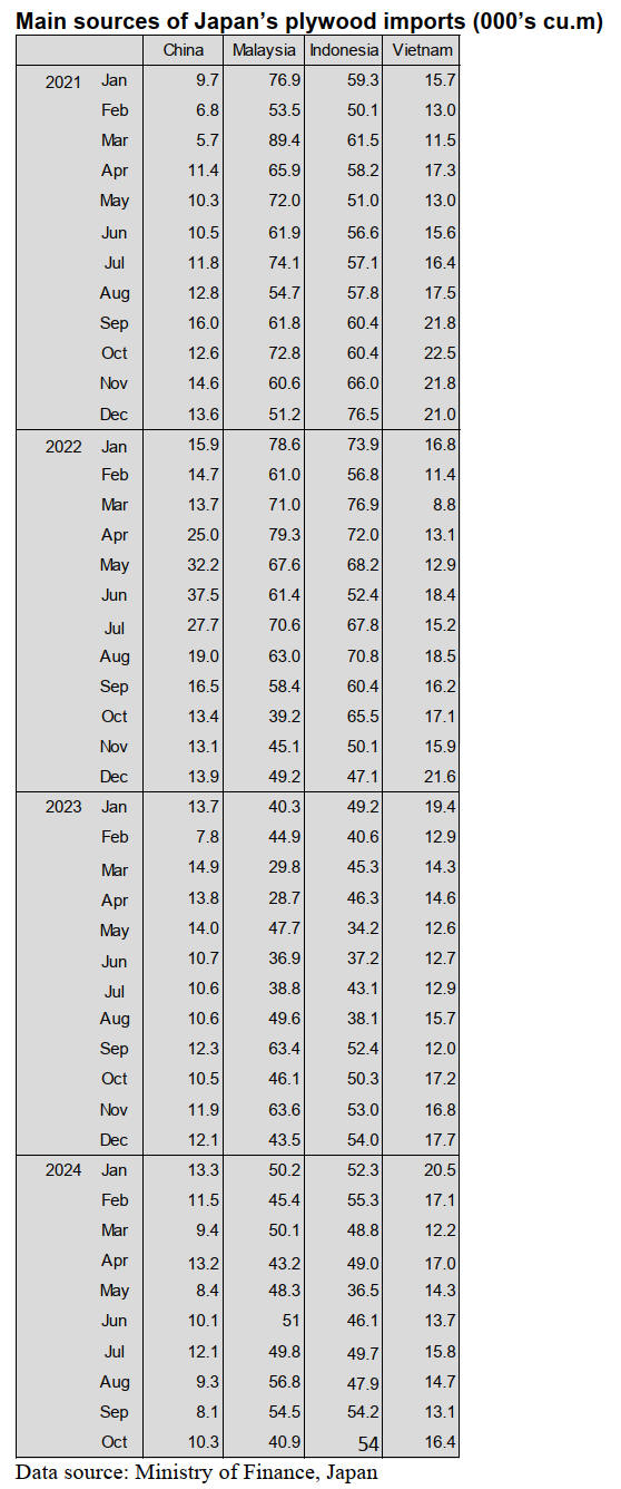 shippers appearing in Japan’s plywood import statistics in