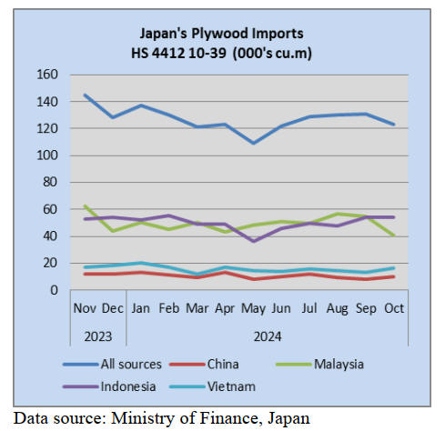 previous month. Malaysian plywood was 25.0 % less than