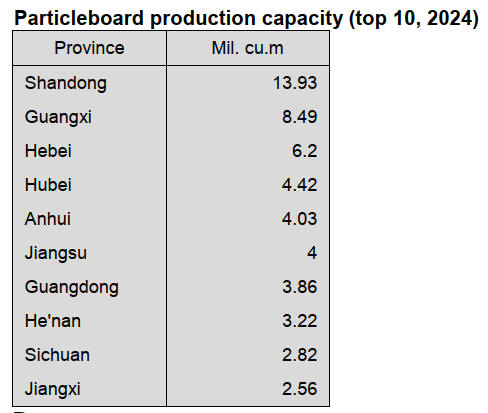 It is forecast that total production capacity of particleboard