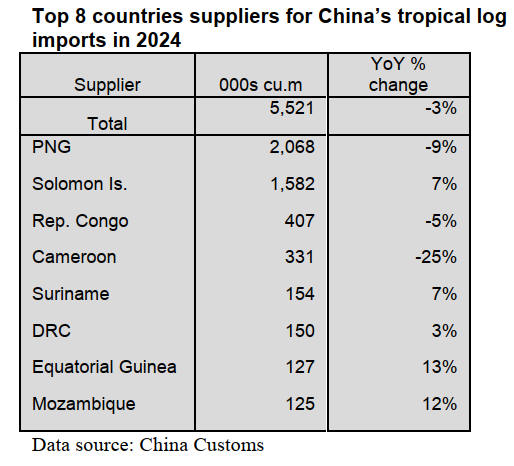 in 2024 but China’s tropical log imports from PNG fell