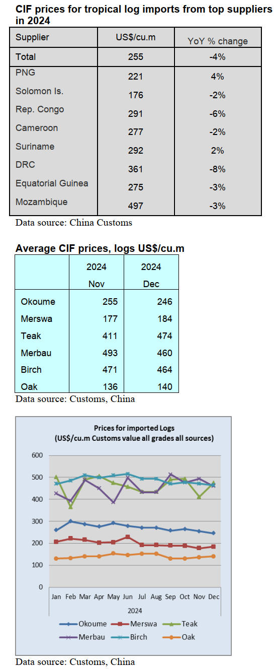 2024. The average price for tropical logs imports in 2024