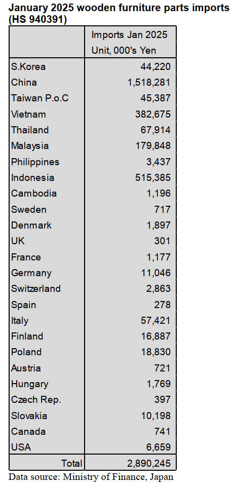 South Sea lumber from Indonesia is 46,164 cbms, 2.7 %