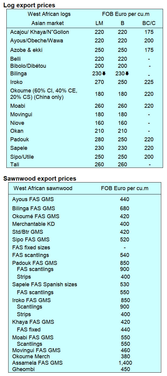 sentiment is low. Only high‐value species such as Azobé,