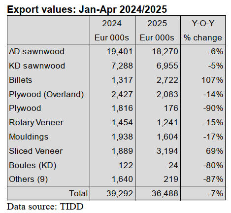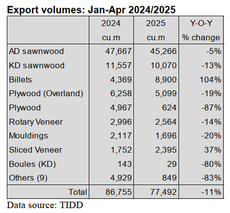 Timber exports are steady but limited by existing quotas