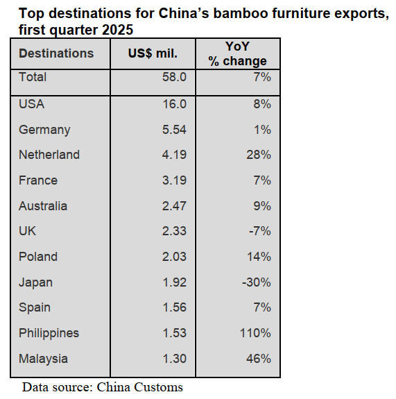 China’s bamboo furniture exports to the top three