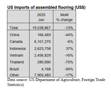 15% and imports of assembled flooring fell for the third
