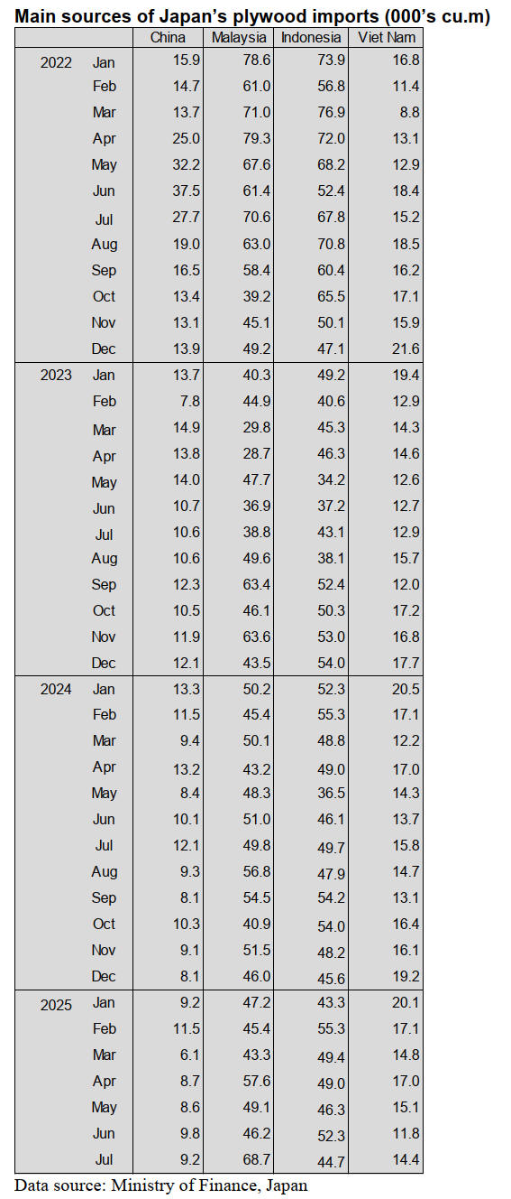 m logs in Oita ¥14,500 per cbm—both up ¥2,000 year-on-