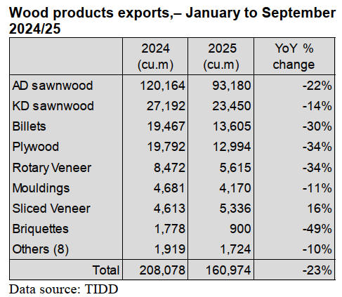 commercial species remain Sapelli, Ayous, Iroko, Padouk,