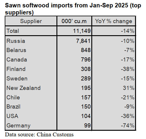 Russia was the largest supplier of sawn softwood imports