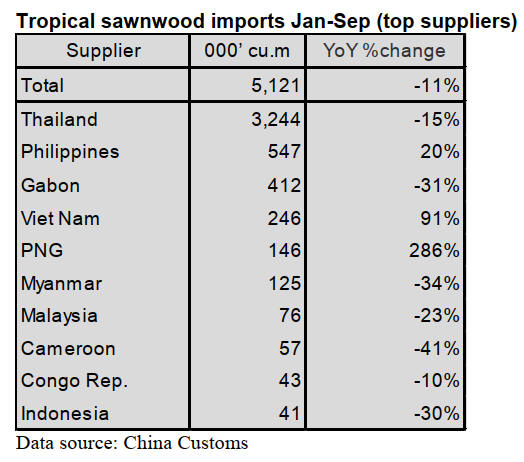 shipped from the Philippines. China’s tropical sawnwood