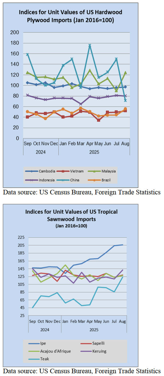 month a year ago. Imports of tropical hardwood veneers