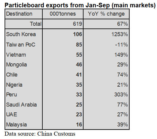 China has exported particleboard to Asia, Africa and Latin