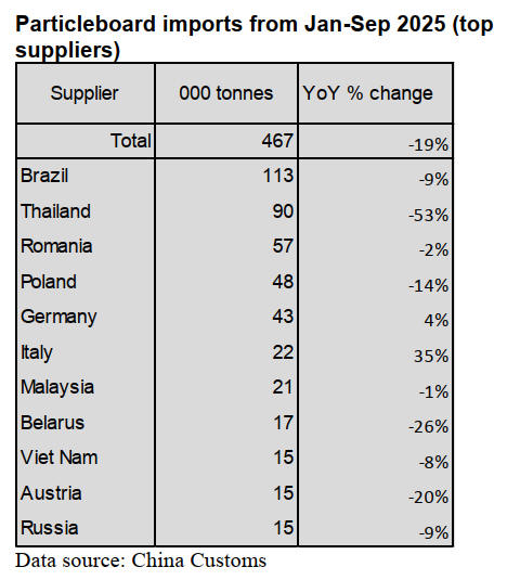 Brazil was the largest supplier of China’s particleboard