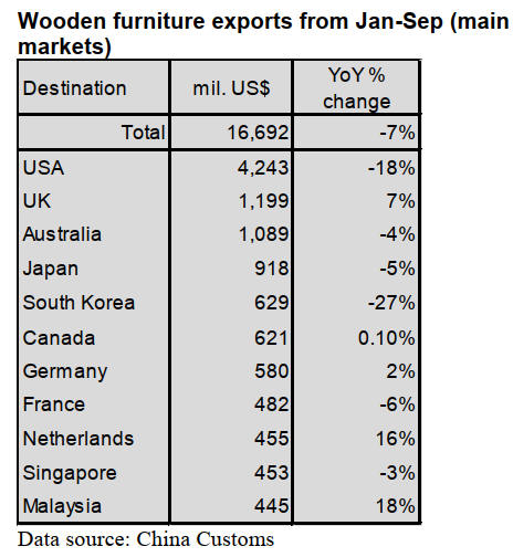 wooden furniture exports to the top 3 countries, theUS,