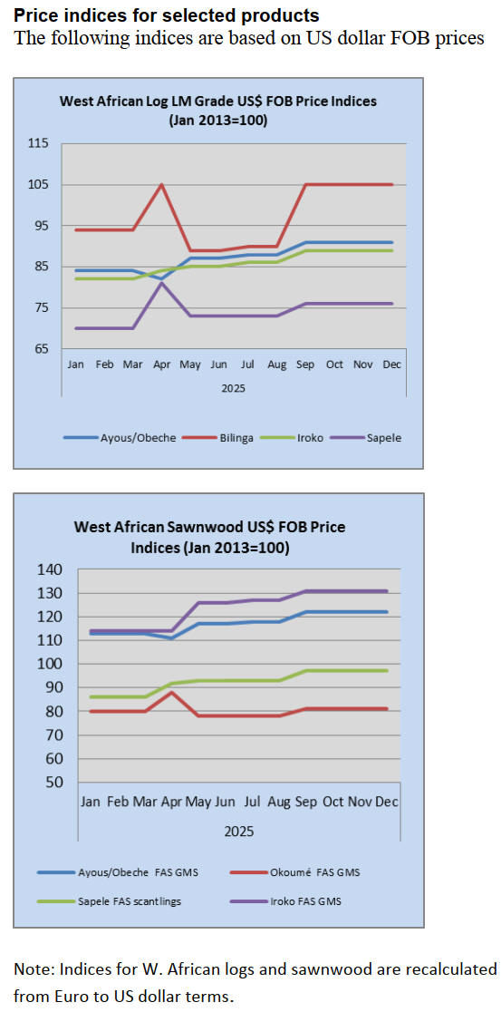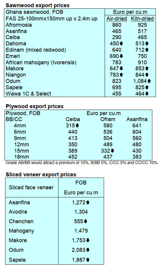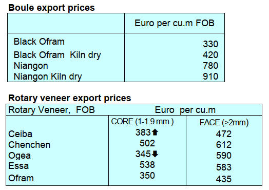 improved demand in China. In contrast, Okoume demand