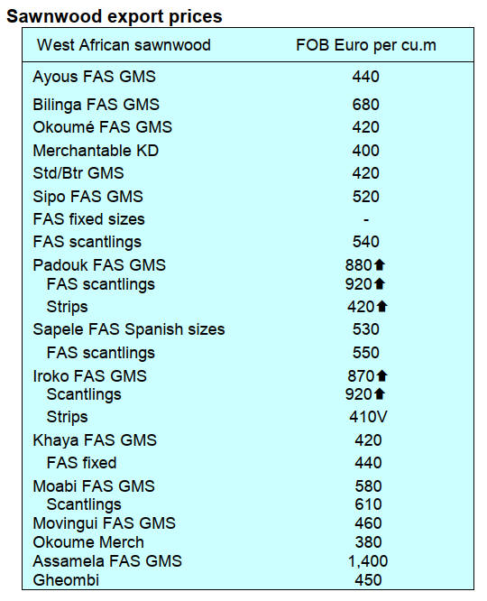 sawnwood prices up by around €20/cu.m. Operators are